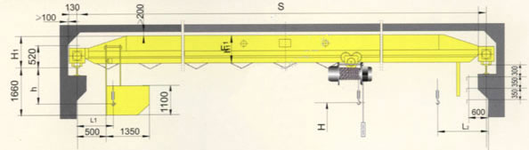 LDA 型電動(dòng)單梁橋式起重機(jī)[側(cè)視圖]