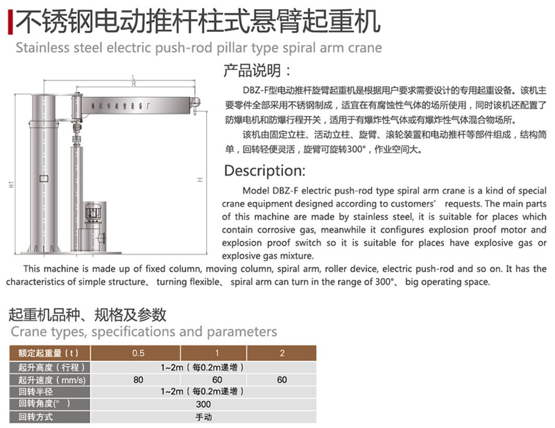 不銹鋼電動(dòng)推桿柱式懸臂起重機(jī)